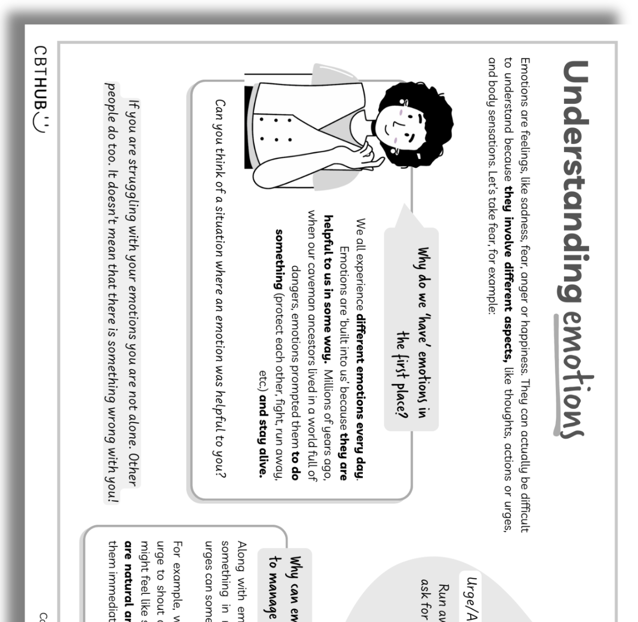 This worksheet explains the purpose of emotions, like fear, and how they influence our thoughts, body sensations, and actions. It highlights why emotions can be tricky to manage and encourages individuals to recognise emotional urges without acting on them immediately.
