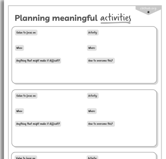 This worksheet is designed to help young people in planning meaningful activities aligned with their core values, supporting behavioural activation in therapy.